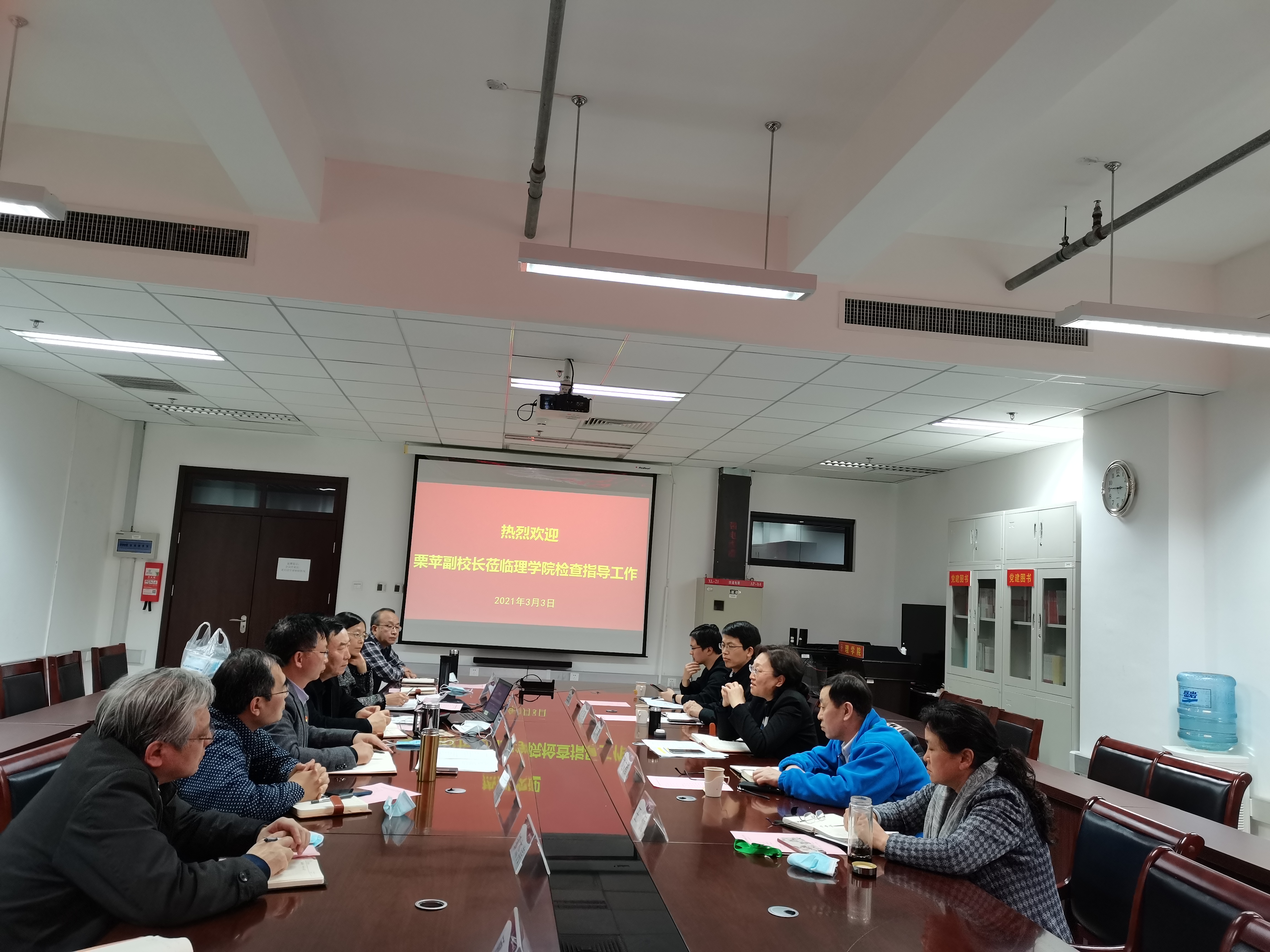 2021年3月3日下午,党委常委、副董事长栗苹协同教务处、招就处一行到访beat365,就本科教学和人才招聘工作进行了座谈调研。会议由beat365党委书记龚维华主持,参会人员包括班子成员、系主任和责任教授。