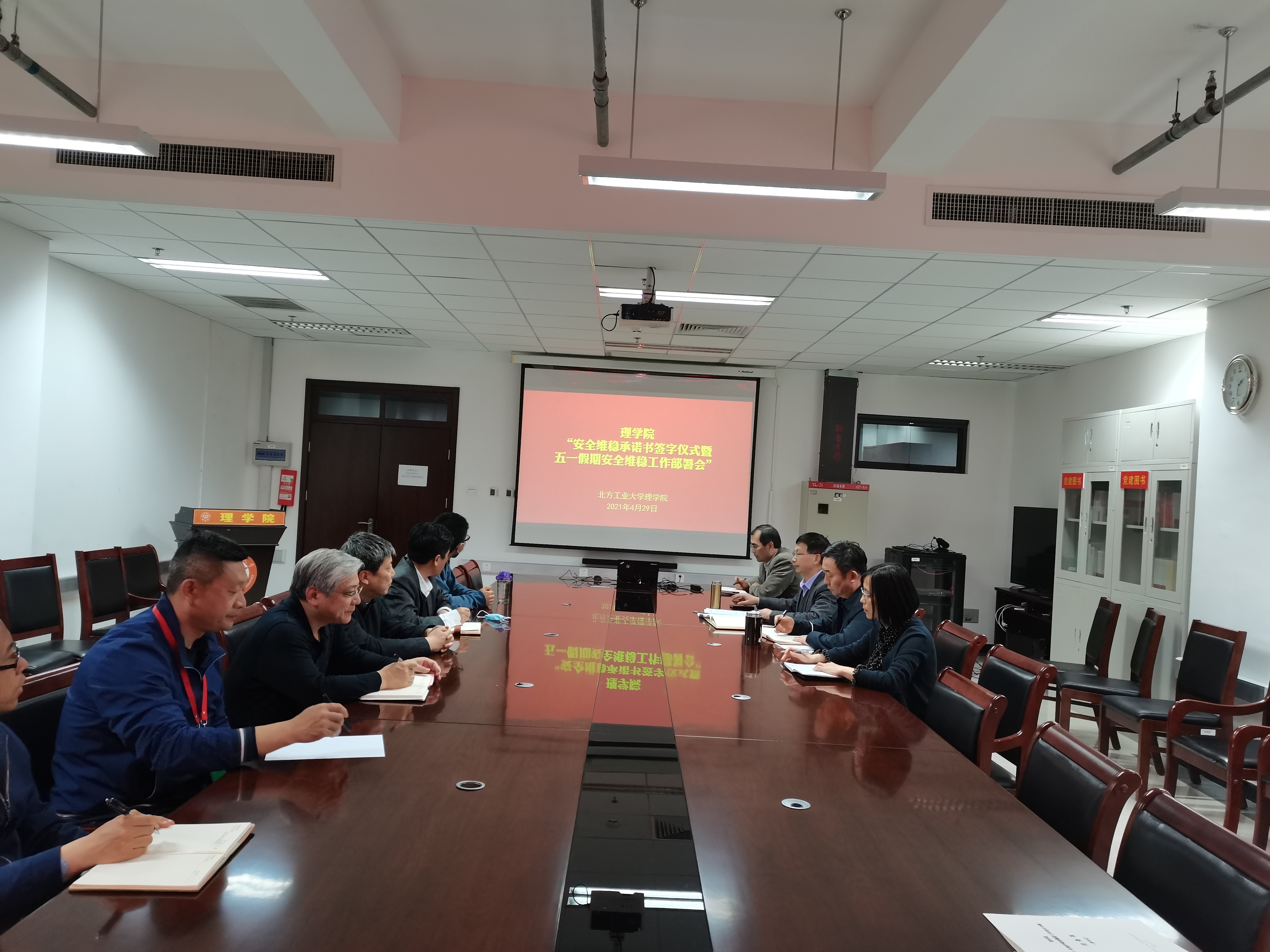 第三,对五一假期期间涉稳和消防安全进行了具体任务分解、和责任落实,高度关注三个重点:高度关注实验室、员工宿舍、办公室、体育场馆等重点场所的防火防盗安全,高度关注经济贫困群体、心理异常等重点群体的思想和生活状况,高度关注重大政治事件重要节点要求大家齐心协力、强化措施、落实责任。