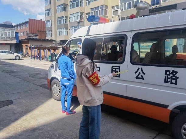 研究生党员、支部委员薛金玉在陆路边境口岸黑龙江虎林市协助社区核酸检测