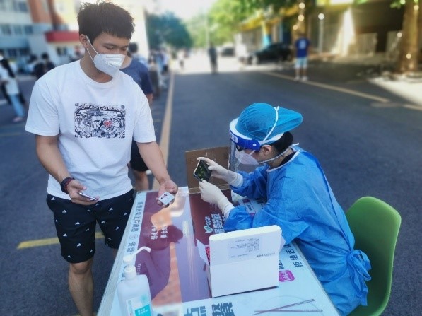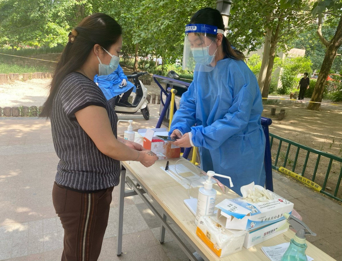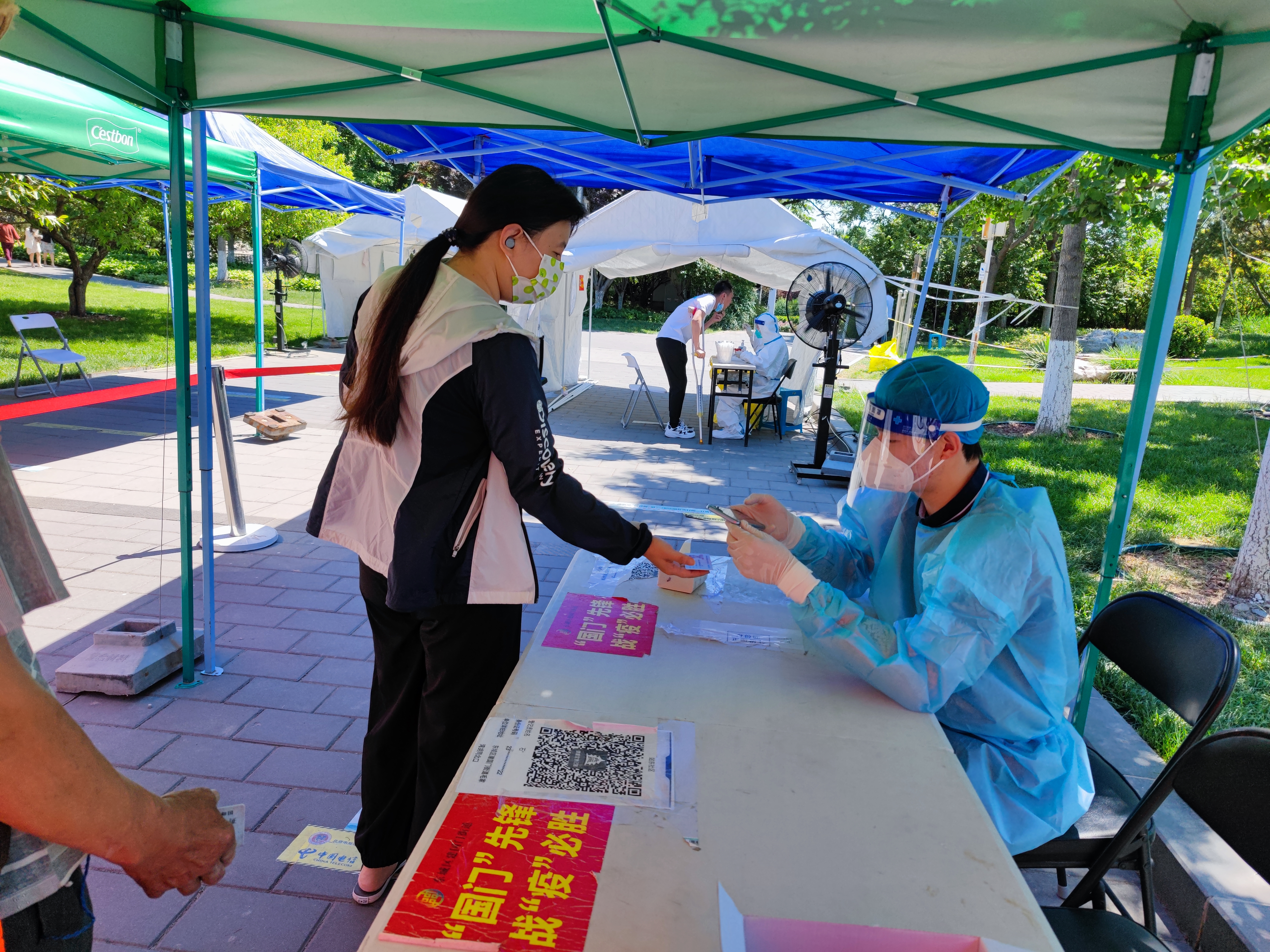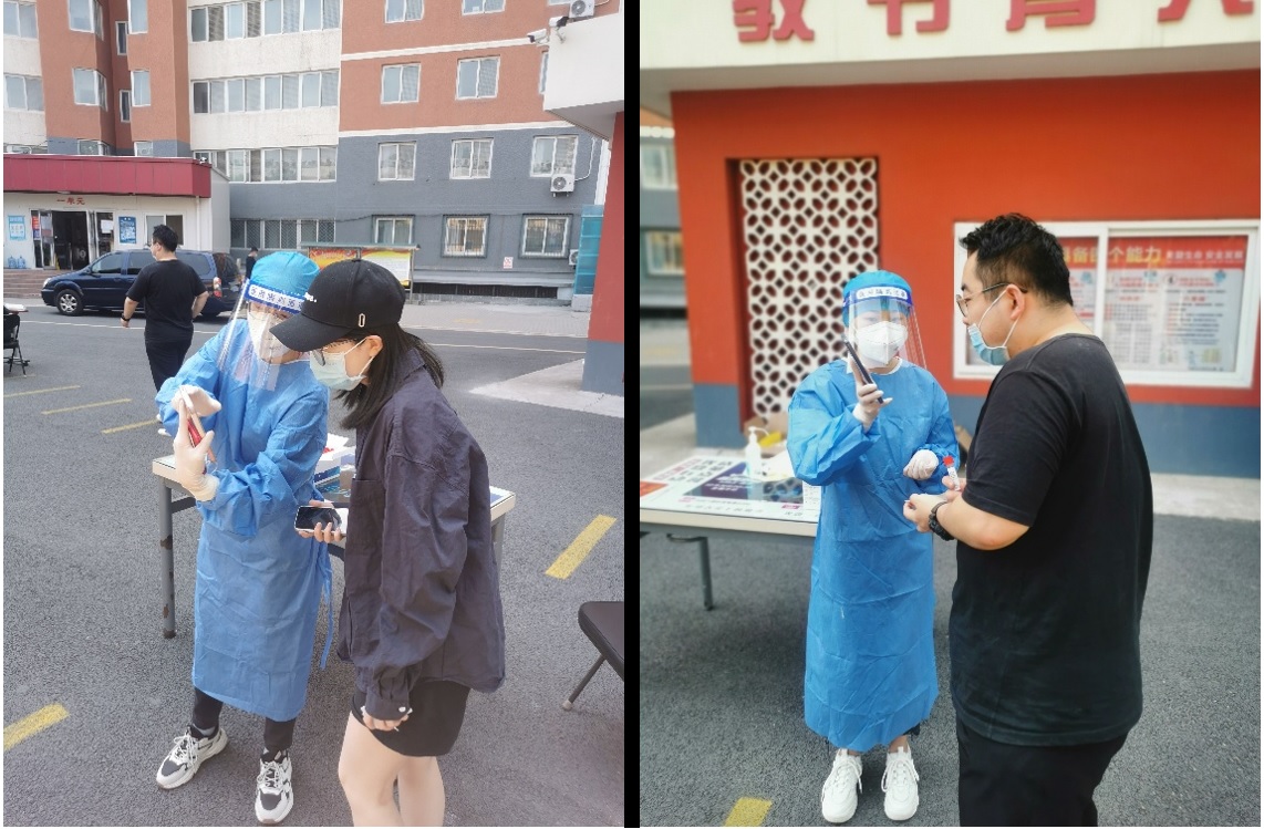 本科员工党员简斯佳、研究生胡国华在北京投身社区核酸检测志愿服务