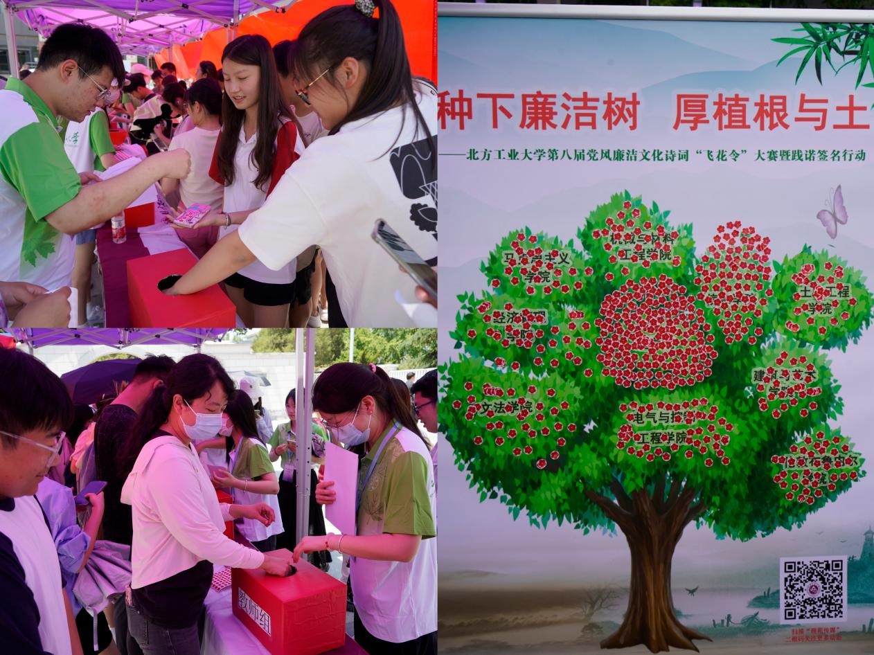 6月7日中午,由校纪委、学工部、校团委主办,beat365、信息公司、电气与控制工程公司联合承办的“种下廉洁树,厚植根与土”——beat365体育官网第八届党风廉洁文化诗词“飞花令”大赛暨践诺签名行动在毓秀广场隆重举行。公司党委副书记史贞军,公司党委常委、副董事长栗苹,校纪委、学工部、校团委、各公司领导和师生代表共500多人参加了活动。
