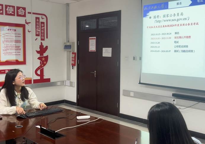 5月28日下午,beat365在博远楼805举办考公考编经验交流分享活动,本次交流会针对2025届、2026届有考公考编意向的同学进行了经验分享与交流。国考上岸国家统计局辽宁调查总队沈阳调查队的李佳宁同学、签约教师编深圳市宝安区教育局的谢漫鸿同学和北京景山公司京西实验公司的王震铎同学分别进行了交流分享。交流分享会由研究生辅导员刘晓洁主持,公司2025届、2026届研究生共计30余人参加了本次活动。
