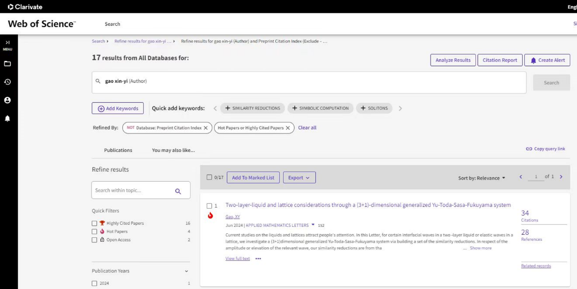 近日,公司beat365教师高心怡在Applied Mathematics Letters(应用数学快报)发表的标题为Two-layer-liquid and lattice considerations through a (3+1)-dimensional generalized Yu-Toda-Sasa-Fukuyama system[通过(3+1)维广义Yu-Toda-Sasa-Fukuyama系统考察双层液体和晶格]的文章入选“ESI热点论文”。