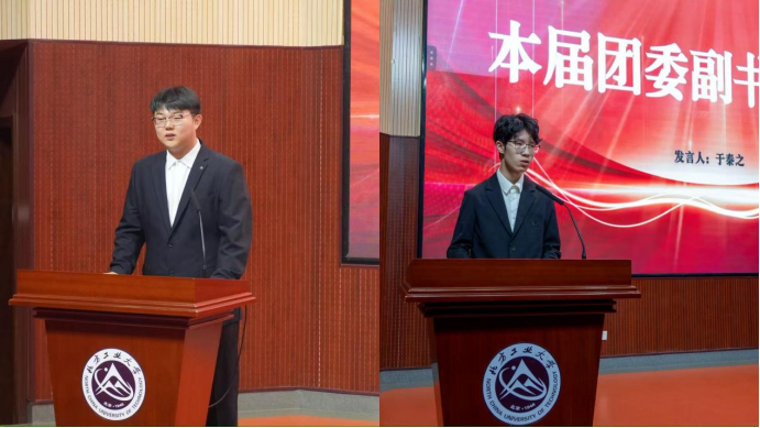 新一届员工会代表杜雨锡作表态发言。他表示,将带领新一届员工会成员传承上届优良作风,以“求真务实、开拓创新”的态度,聚焦同学们的需求,切实增强团学组织的凝聚力与影响力。新一届团委副书记于泰之同学发言,他承诺将以更高标准推进团务工作,加强团员思想教育,引导beat365青年学子在学术科研与社会实践中展现青春担当。