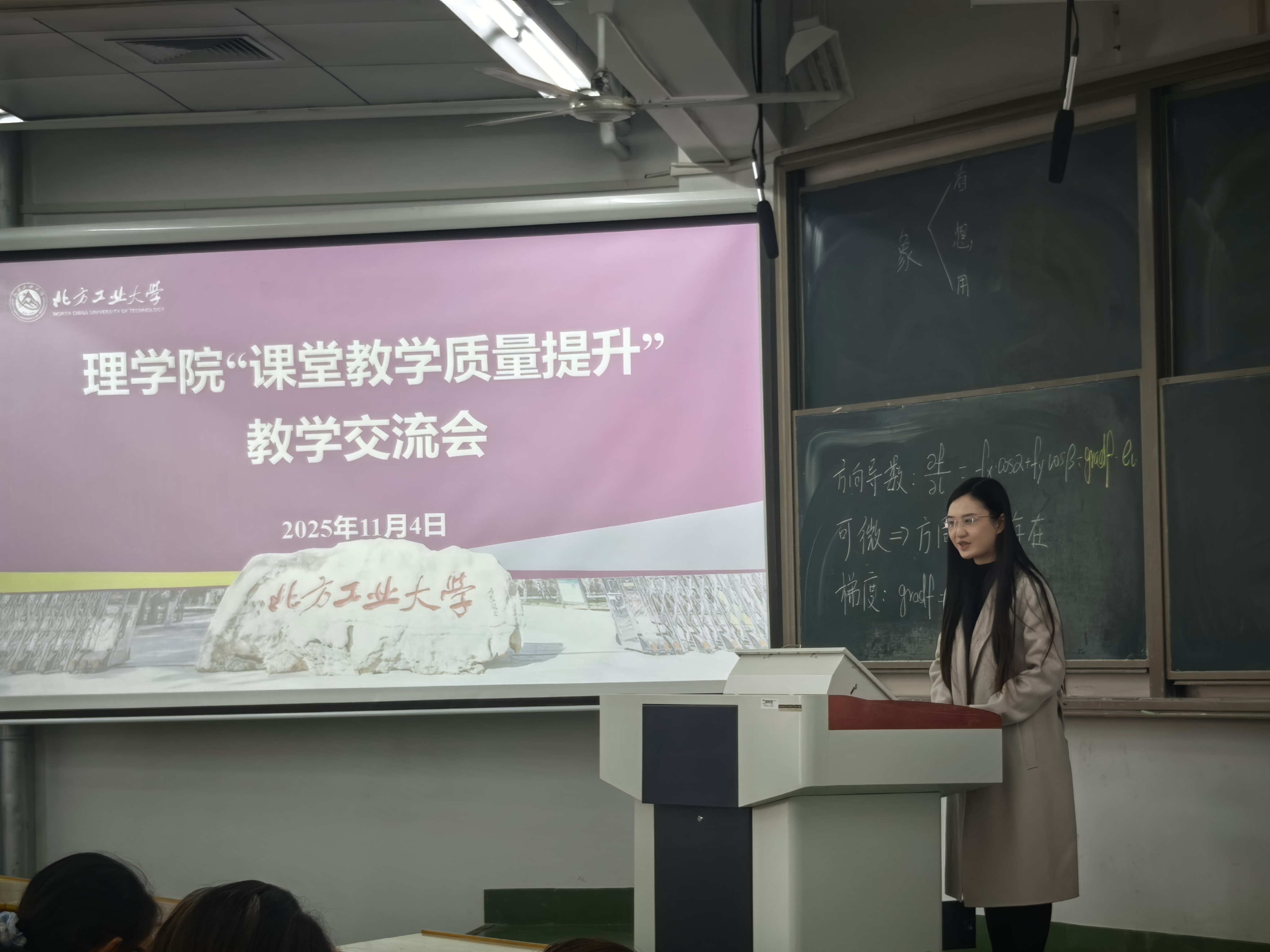 会上邀请曾经获得北京市青年教师教学基本功大赛一等奖,来自数学系的钟昱与梁成瑜两位老师为大家分享了教学经验。