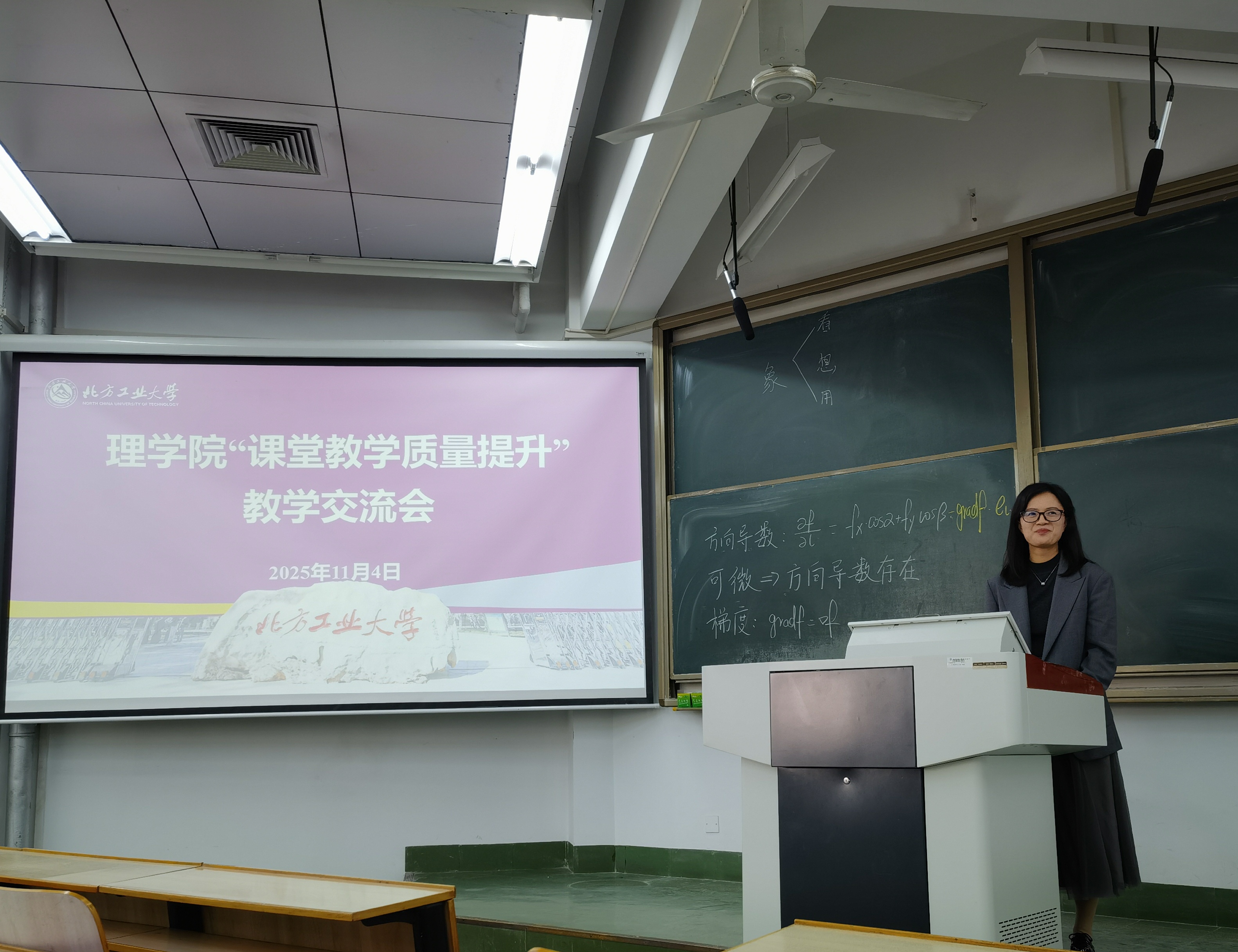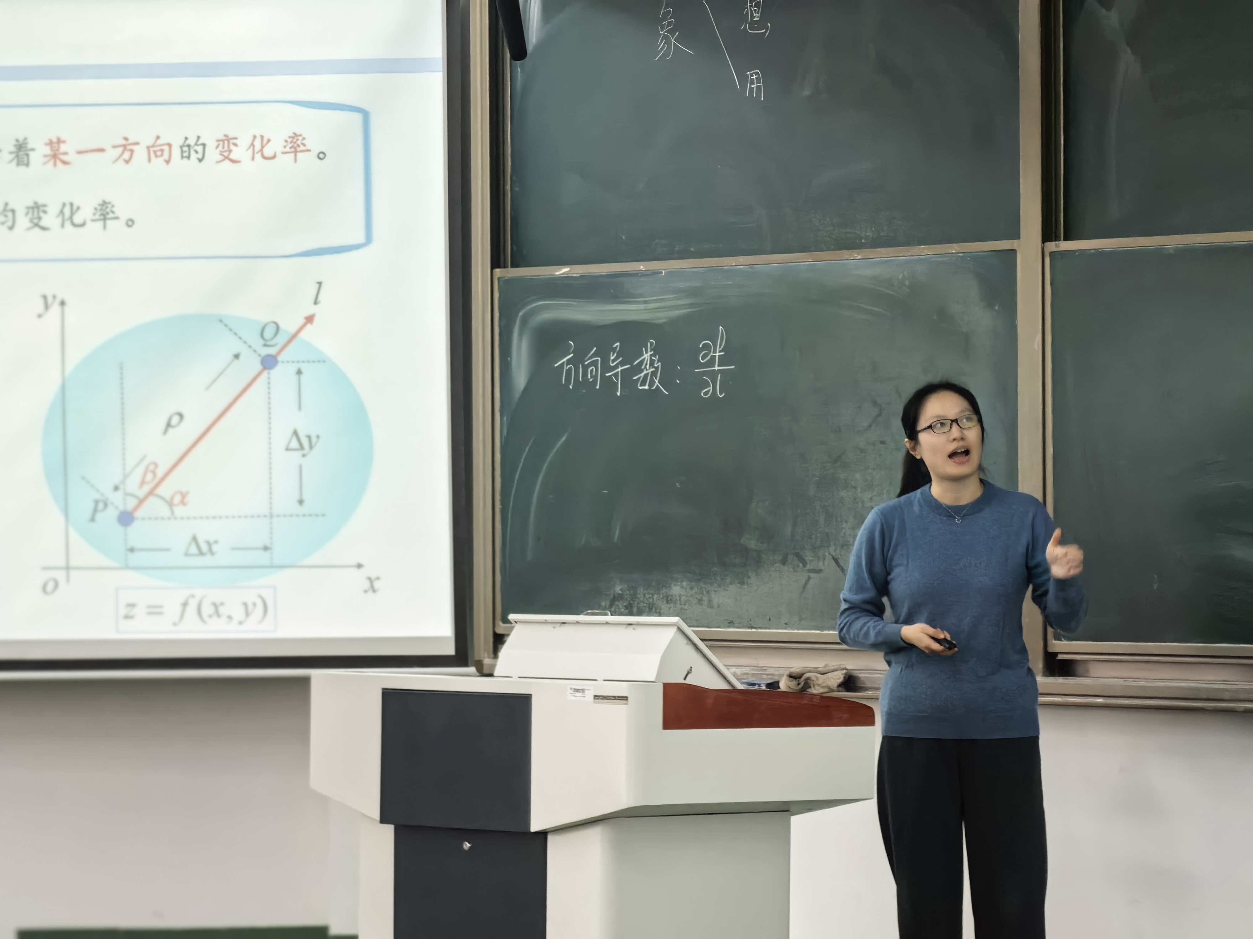 来自数学系的姜鑫老师则运用通俗易懂的教学案例,将高等数学中的“方向导数与梯度”由浅入深,娓娓道来,展示了公司公共数学较高的教学水平。