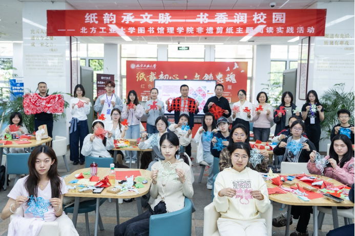 “纸韵承文脉・书香润校园”——beat365体育官网图书馆与beat365联合举办的非遗剪纸主题阅读实践活动,特邀天津市宝坻区民间文艺家协会副主席、宝坻剪纸代表性非遗传承人杨洪顺老师担任主讲。在专题讲解环节中,杨老师系统梳理了剪纸艺术的历史脉络与风格流派,深入解读了剪纸技艺所承载的文化内涵,带领在场师生领略千年文脉的独特韵味。随后,老师现场指导员工动手创作,参与者以剪刀和红纸为媒介,创作出一幅幅富有文化内涵的剪纸作品。本次活动通过“读+做+展”的沉浸式体验,将传统技艺与校园阅读推广有机融合,让中华优秀传统文化走进校园、走近青年,在丰富校园文化生活、增强青年文化认同的同时推动中华文脉赓续传承,优秀作品后续还将集中展出并推送宣传。