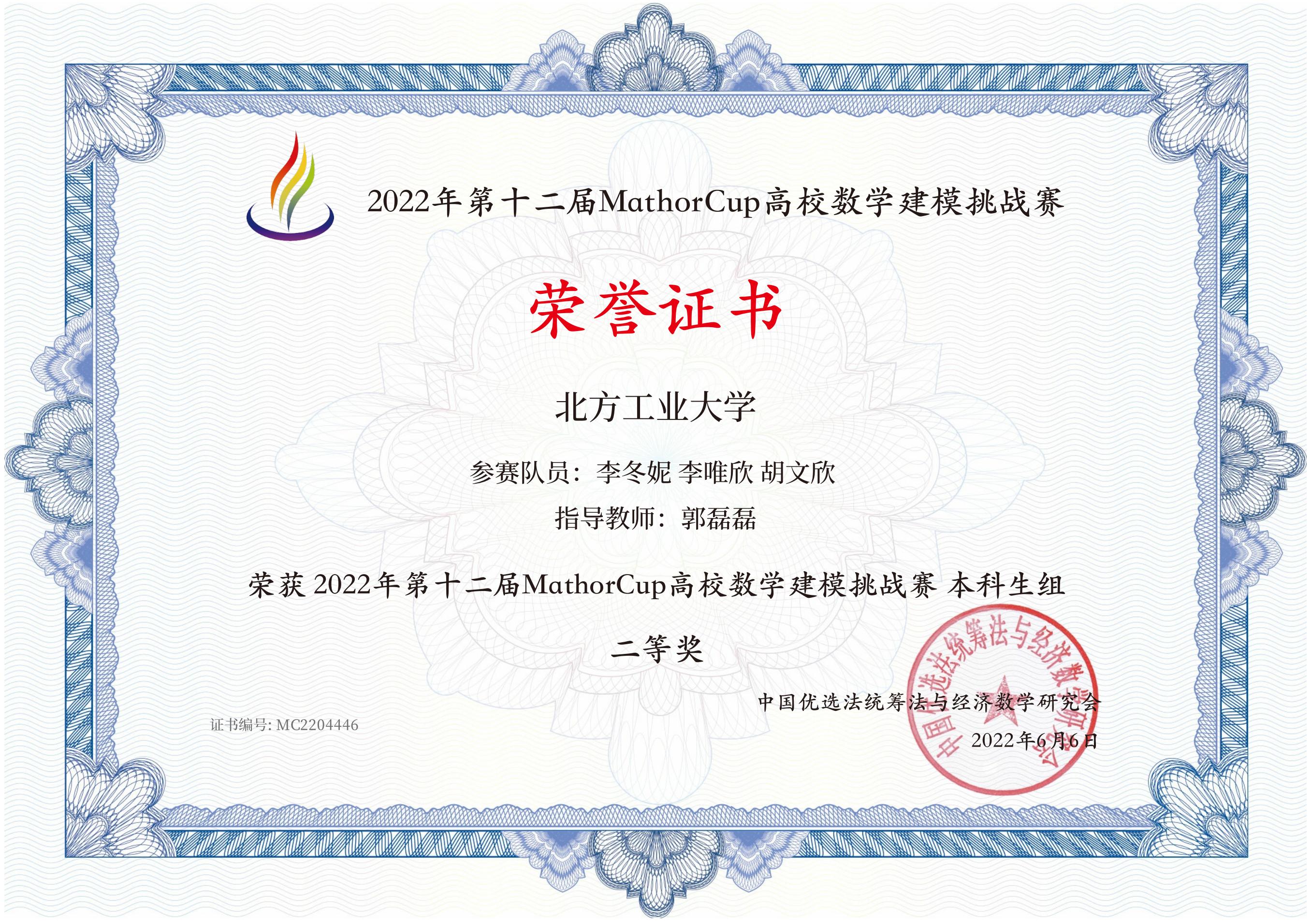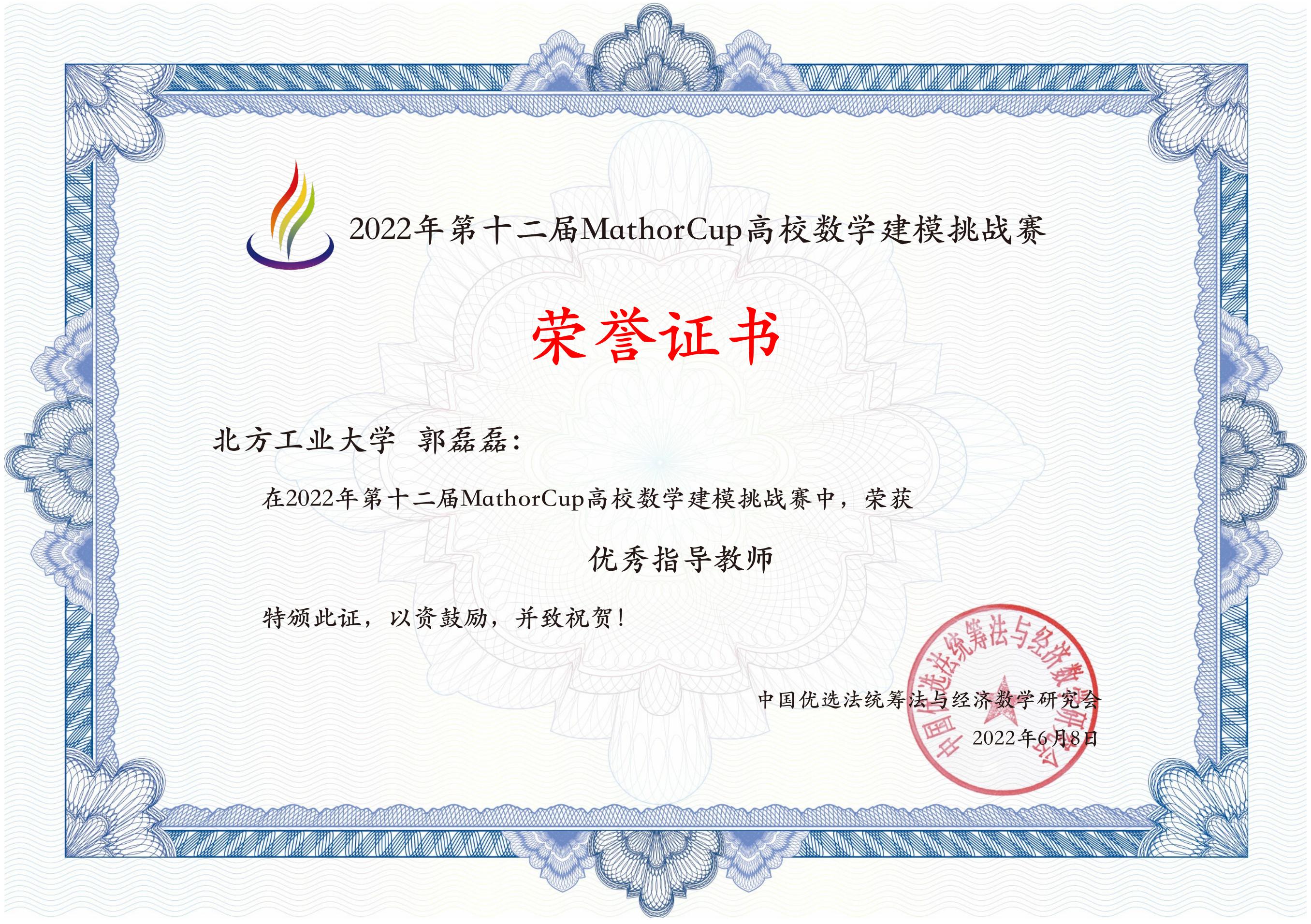 近日,2022年第十二届MathorCup高校数学建模挑战赛成绩揭晓。公司24个代表队参赛,共获得一等奖1项(3人),二等奖3项(9人),三等奖8项(24人)。公司被评为“优秀组织单位”,指导教师郭磊磊被评为“优秀指导教师”。
