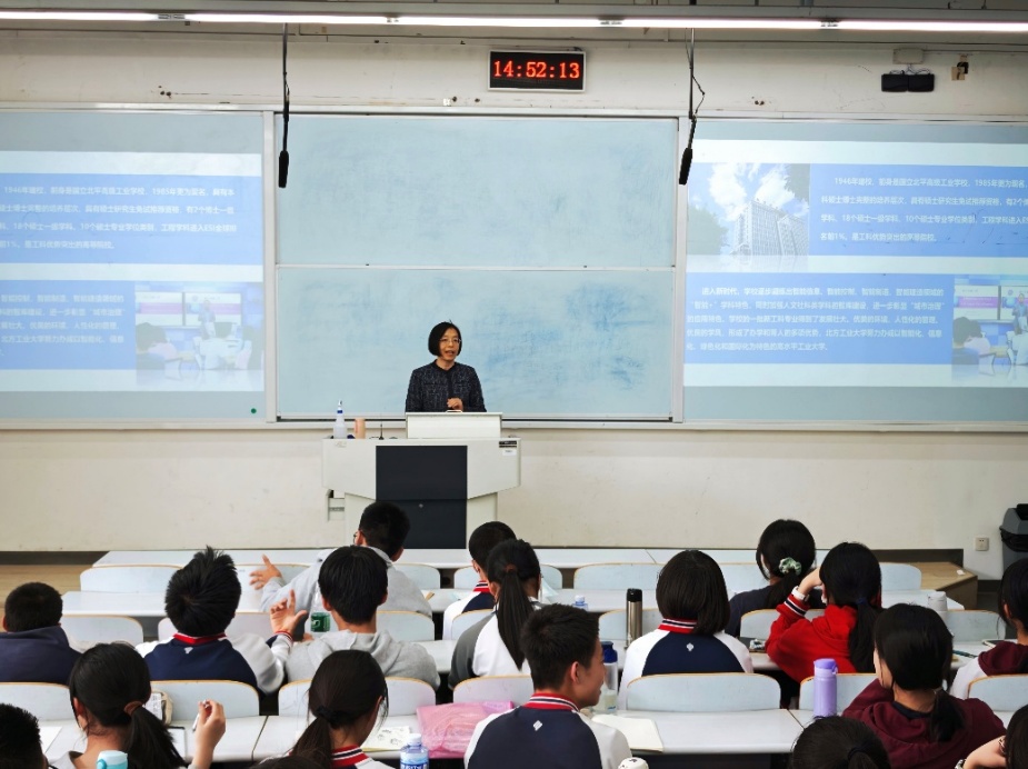 数学讲座结束后,beat365副经理李红梅从beat365体育官网的基本情况、各专业组往年分数、优势专业、转专业政策、升学深造比例以及中外合作办学等六个板块为来访师生做了详尽讲解。