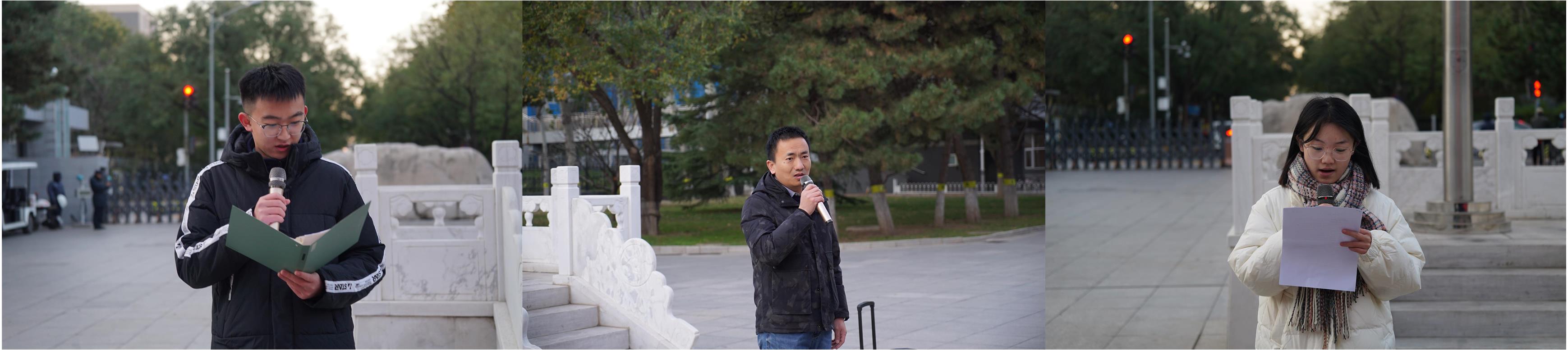 信23-3班李博言、统21-2班王梦圆作为员工代表进行国旗下的演讲。李博言同学表示作为当代老员工要积极响应党的号召,积极承担作为新时代青年的责任,不断学习以此来丰富自己,用青春谱写时代华章。王梦圆同学结合自己的学习经历,勉励新生们擦亮青春奋进的底色,让勤奋学习成为青春远航的动力,争做敢想敢为又善作善成的新时代好青年。