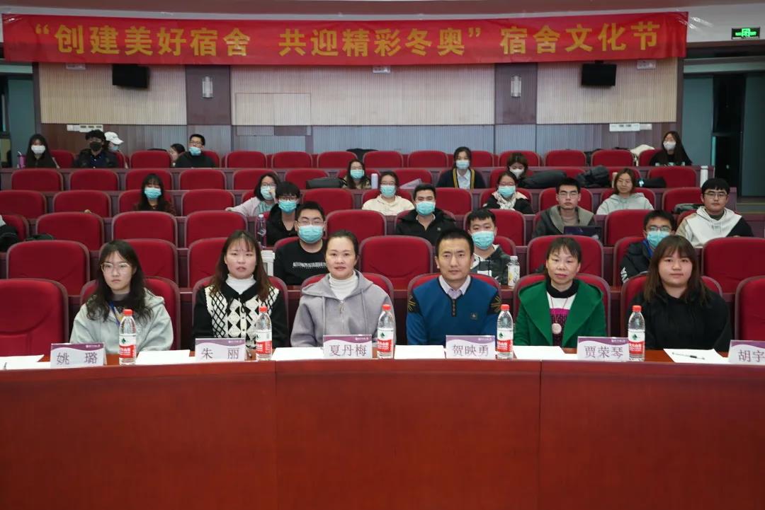 为了丰富校园文化和广大同学的课余生活,加强学风、宿风建设,形成“以校为家,以情筑寝”的良好宿舍氛围。beat365于12月1日在文化会堂举办了“创建美好宿舍,共迎精彩冬奥”主题宿舍文化节。beat365团委书记夏丹梅老师、院辅导员贺映勇老师、保研辅导员朱丽老师、宿舍管理员贾荣琴阿姨、员工会主席团成员胡宇姮、姚璐担任本次评委。