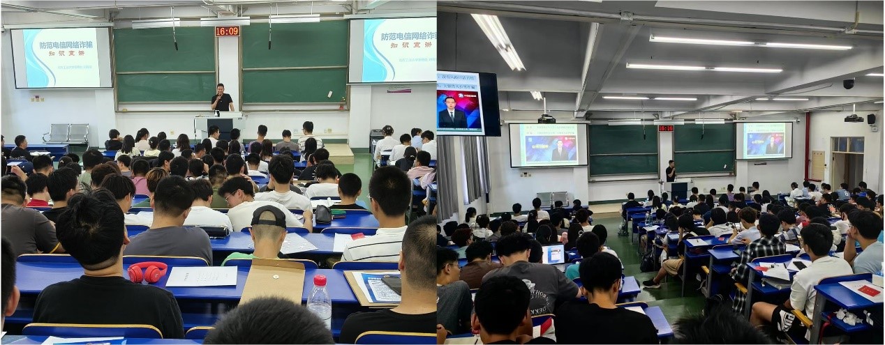 为进一步提高新生防诈骗意识,增强网络电信诈骗鉴别能力,培养防诈骗技巧。beat365于9月12日在浩学楼东304召开以“防范电信诈骗”为主题的新生入学教育活动,全体2023级新生积极参与。