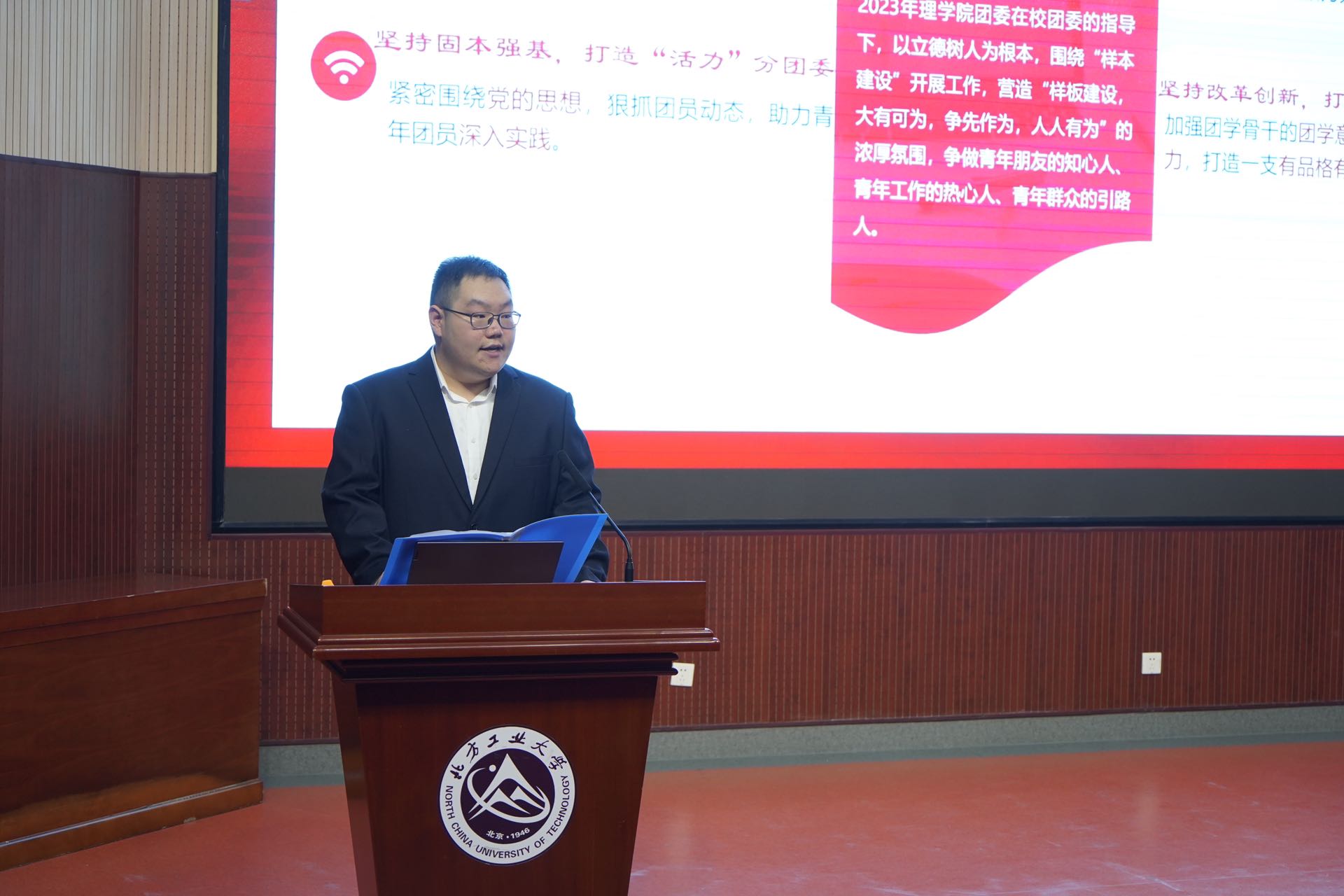 公司团委第二十届员工会主席王然对2023-2024学年的员工会工作进行总结,他希望新任员工会骨干们能继续秉持员工之会、惠致员工的理念,助力理院团学蓬勃发展。公司团委第二十届团委副书记刘东润总结了上一学年团委的工作,他号召全体团学骨干积极营造“样板建设,大有可为,争先作为,人人有为”的浓厚氛围,为同学们提供更好的帮助和服务。