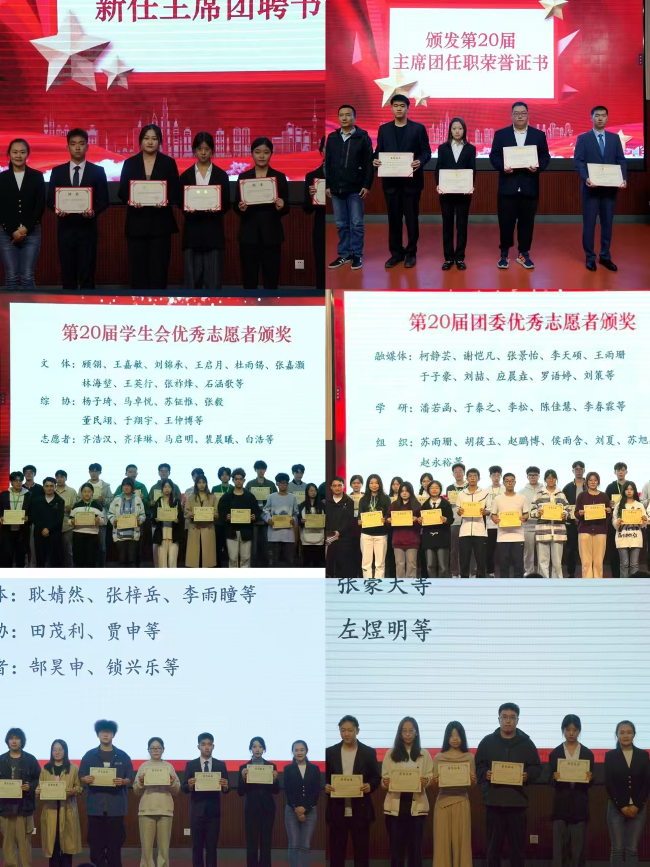 夏丹梅、熊敏为公司团学第二十届优秀部长和志愿者颁发了奖状,并为公司团学第二十一届主席团成员颁发聘书,贺映勇为公司团学第二十届主席团成员颁发了任职荣誉证书。